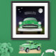 MCM Mid-Century Modern retro personlig med hans namn Stor pojkes gröna elaka retro bil pojkrum poster