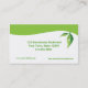 En visitkort med huset och löv med vatten tappar på grönt- och vitbakgrund. Baksidaen av kortet har precis löv och vatten att tappa på grönt och vit. En themed visitkort för ekologi för företag för alternativ energi, hem- energilösningar, koordinerande objekt för Etc. som är tillgängliga i lager.