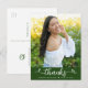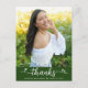Se till att din favoritstudent visar uppskattning till alla som stödde deras milstolpshändelse! Skicka ut detta fantastiska, enkla, moderna, personliga fototack-kort. En rolig och lekfull visuell med vit handskriven text och söta, lekfulla hjärtan, tillsammans med hennes namn, examensår och skola, överlagras på ett jägaregrönt band. På framsidan kan du anpassa med ett foto du väljer tillsammans med din graduates namn och examensår. Lägg till ett personligt meddelande på baksidan i mjuk grå typografi under jägaregrönt mössikon. Matchande annonser, festinbjudningar, mössprydnader, plaketter och andra examenspresenter finns också tillgängliga i denna trendiga och stilfulla kollektion. Garanterat att tillföra stilfullt kul till hennes speciella tillfälle!