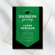Eleganta akademiska examensinbjudningar med en klassisk svart bakgrund, en grön examensstola i mitten, en examensmössa och en modern textmall som är lätt att anpassa.