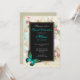 En vacker inbjudan till en mängd olika evenemang, som t.ex. brudshow eller pensionsfest eller födelsedag. Designad med en elegant grön fjäril. En svart ram med en guldbård undertill. Bakgrunden är ett vintage collagemönster med rosor och en shabby gammaldags look.