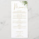Denna eleganta botaniska gröna blad bröllopsmeny kan anpassas med din information i chic guld typografi med din monogram initialer på baksidan. Designad av Thisisnotme©