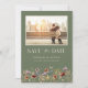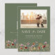 Grön Foto Blommig QR-kod Spara Datum. Denna stilrena och eleganta rädda-datum-inbjudan till bröllop har vackra, handmålade akvarell- blommor arrangerade som en vacker bukett perfekt för vår-, sommar- eller höstbröllop. Hitta matchande artiklar i Sage Green Boho Wildflower Wedding Collection.