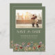Grön Foto Blommig QR-kod Spara Datum. Denna stilrena och eleganta rädda-datum-inbjudan till bröllop har vackra, handmålade akvarell- blommor arrangerade som en vacker bukett perfekt för vår-, sommar- eller höstbröllop. Hitta matchande artiklar i Sage Green Boho Wildflower Wedding Collection.