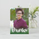 Se till att din favoritstudent visar uppskattning till alla som stödde deras milstolpshändelse! Skicka denna fantastiska, enkla, moderna, personliga fotoflicka tackkort. Kraftfull, grafisk, vit typografi och en jägaregrön överlagring över ett foto som du väljer. På framsidan kan du anpassa den anpassade texten med din students namn och examensår. Lägg till ett personligt meddelande på baksidan i mjuk grå typografi under jägaregrönt kappikon. Garanterat att lägga till en stilfull touch till deras korrespondens! Matchande annonser, adressetiketter, gårdsskyltar, banderoller, kapp-topp, servetter, tallrikar och andra examenspresenter finns också tillgängliga i denna trendiga och eleganta kollektion. Garanterat att lägga till stilfullt kul till deras speciella tillfälle!