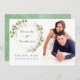 Trendiga salvia gröna och vita akvarellblad bröllop tack fotokort med guldgeometrisk ram.