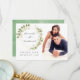 Trendiga salvia gröna och vita akvarellblad bröllop tack fotokort med guldgeometrisk ram.