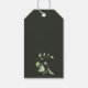 Bröllopsdusch etiketter för mini vinflaska med vattenfärg botaniska gröna blad med guldram och solid grön färg på baksidan.
