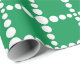 Grönt geometriskt mönster med vita prickiga rutor som bildar ett rutnät. Den upprepade designen skapar en känsla av ordning och symmetri och kombinerar moderna och retro-vibbar.