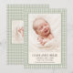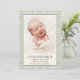 Grön Gingham Baby Födelse Annonsering Foto Kort