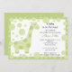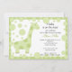 Förtjusande baby showerinbjudan som presenterar ett ljust - den gröna giraffet med en grön polka prack bakgrund. Perfekt för endera en flicka eller pojkebaby shower. Matcha objekt som är tillgängliga i vårt, shoppa. Perfekt för en flickababy shower.