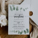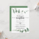 Denna gröna glädje eukalyptus bröllopsinbjudan är perfekt för en modern efterbröllopsfest. Designen har vattenfärg handritade eleganta botaniska eukalyptus grenar och blad.