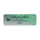 En elegant etikett med grön glitter, gyllene blad och gröna rosor.