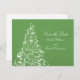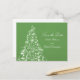 Enkel men mycket elegant gnistrande julgran Spara datum-postkort i grönt med en virvlande julgran dekorerad med upplysta gnistrande glödlampor. Detta vackra "spara datum"-postkort är perfekt för att tillkännage ett jul- eller vinterbröllop. Lätt att anpassa, lägg bara till detaljerna om bröllopet i de medföljande textfälten. Klicka på "Anpassa"-knappen för fler anpassningsalternativ. OBS: DETTA ÄR DIGITAL KONST (PLATT) DESIGN. DESIGNEN ÄR SKAPAD FÖR ATT SIMULERA UTSÖNDET AV EN BELYST JULGRAN.