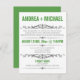 Moderna inbjudningar designade för bröllop där paret har ett destinationbröllop eller en liten privat vigselceremoni och endast bjuder in gäster till mottagningsfirandet. Typografin på framsidan av dessa inbjudningar är designad i gröna och grå typsnitt, och baksidan är enfärgat grön med valfri vit text för eventuell RSVP-information.