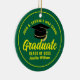 Denna moderna gröna och gula anpassade examensprydnad för seniorer har din gymnasie- eller högskolenamn för klassen 2026. Anpassa med ditt examenår under den eleganta handskrivna stilen och svarta examenshatten för en fin personlig gåva för examen.