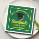 Dessa moderna gröna och gula anpassade studentservetter med studentmössa har elegant typografi med din gymnasie- eller högskolenamn för kullen 2026. Anpassa med ditt examensår under den snygga handskrivna stilen och svarta studentmössan för fina personliga studentdekorationer.