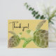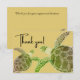 Tackkort med marinblå havssköldpadda i tropisk kustmiljö
