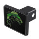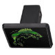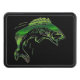 Digital konst som presenterar en fisk i lutning, skuggar av grönt-, gult- och bruntbanhoppning ut ur vatten på en svart bakgrund. Ändra bakgrundsfärgen, om önskat.