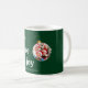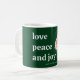 Denna minimalistiska design har ett klassiskt "Kärlek, fred och glädje" -budskap, hjärtliga önskningar, modern och elegant typografi på en tidlös och klassisk skogsgrön bakgrund. Kombinerat med en lekfull julgransprydnads fotoram är denna kaffekopp perfekt för alla som söker en verkligt personlig julpresent med en glad touch. Helt anpassningsbar med din foto och namn. Perfekt för att sprida julglädje med modern stil och tidlös elegans.