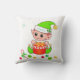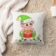 Modern söt grön jul-tomte med presentlåda, julgranskulor, godisstav och stjärna på vit bakgrund Julkudde. Namn kan anpassas.
