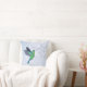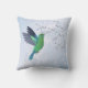 En söt grön kolibri med blå körsbärsblommor på en blå blommande skimrande bakgrund. Elegant naturdesign.