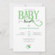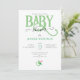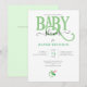 Bedårande GRÖN BABYFÖRRÄTTNING inbjudan med grön BABY typografi och liten smulkor. Könsneutral.