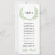 Dessa kort är utformade för att ge gästernas sittplaner för din bröllopsmottagning, bankett eller annat speciellt evenemang. De är en del av en matchande brölloppskollektion med en grön akvarell lagerkrans-grafik. Redigera helt enkelt ett enda kort för varje bord du kommer att ha på ditt evenemang, t.ex. ett kort för bord 1, ett kort för bord 2, osv. med gästnamnen skrivna i utrymmena för gästnamn. Om du vill ändra teckensnittsval eller teckenstorlek väljer du "anpassa" och väljer önskat teckensnitt.