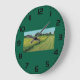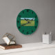 Håll tiden med en vy över det fridfulla landskapet med hjälp av denna minimalistiska gröna landskapsklocka. Den platta konstillustrationen av en lugn landsbygd äng fungerar som en vacker fokuspunkt för ett kök, kontor eller vardagsrum. Dess rena linjer och lugnande jordtoner gör den till en funktionell konst som kompletterar modern lantlig eller samtida heminredning.