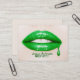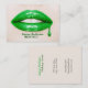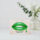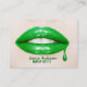 Grön visitkort för läppstiftMakeupkonstnär som presenterar glansig grön läppar och matchar text. Ljus och för öga fånga.