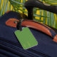 Nätt bagage märker henne med en grön unicorn