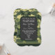 Modern grön militär armé kamouflage jakt mönster, formell bröllopsinbjudan, lätt att anpassa brudens och brudgummens namn till textmallarna för att skapa en unik anpassad inbjudan för din speciella stiliga kamouflage, redneck hillbilly tema eller manliga speciella tillfällen och firanden.