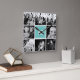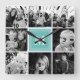 Visa dina älskade familjeminnen med denna personliga fyrkantiga väggklocka. Med en stilren grön bakgrund och en kollage av dina favoritfoton är denna klocka ett unikt och sentimentalt tillskott till alla hem. Lägg till din familjs initial för en personlig touch. En perfekt present till bröllop, årsdagar eller inflyttningar.