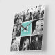 Grön monogram familjefotokollage fyrkantig klocka