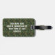 Denna design för märkren för bagage för anpassadecamomönster har ett metallsheriffemblem med utrymme för att dig ska tillfoga din monogram/initialer eller annan text. Kamouflaget är skuggar in av grönt och brunt. Det finns också ett fält för att dig ska tillfoga din namn & adress till baksidaen (eller enkelt att ta bort ta provtexten). Det är en underbar design för en person i militären, en veteran, en kvinna eller en man i tillsatta lagar, en jägare eller även en fläkt av populär TVshows med att gå zombies/dött.