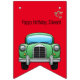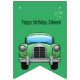 Rolig partifana med en bild av en grön bil - texten kan anpassas till vad du vill. Du kan ändra det själv.
