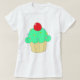 Grön muffint-skjorta. Anpassadet-skjorta av en gullig grön muffin med färgrika stänk och det röda körsbäret överst.