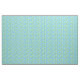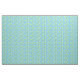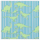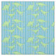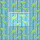 Blått- och vitrandar, med ett mönster av dinosaurs på det. Dinosaursna göras i grönt och vit.