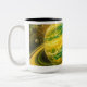 Grön och gul planet med ringar Två-Tonad mugg