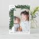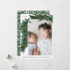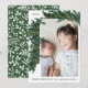 Rustik grön tallkrans med vit botanisk mönster på baksidan foto julkort