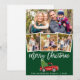 Grön penselskrift Vattenfärg Vintage röd lastbil med julgran 4 Foto Familj God Jul-kort