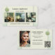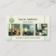 Visitenkort med 4 av dina egna foton i en portfolio över dina favoritprojekt, inramade av en elegant grön design. En mall för din logotyp samt anpassad QR-kod är tillagd. Perfekt för inredningsdesigner, hemdekorationsproffs eller projekt inom hållbar design. Kan anpassas för andra ändamål.