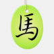Oval prydnad med det svart bläckhästhuvudet, grön bakgrund för lutning, kinesiskt teckensymbol för häst på omvänt. Denna är en underbar gåva för det kinesiska året av hästen (Jan 31 2014 - Feb 18 2015), för folk, som var bördigt ett hästår, eller för hästälskare överallt. Hästen symboliserar handling, frihet, framsteg, äventyr och romantik. Spiritually är hästen lycklig för många folk inklusive affärs- och reafolk, konstnärer och aktörer, idrottare, ingenjörer, handelsresandear och folk som fungera med eller nästan jorden. 2014 är året av den gröna) hästen för Yang trä (.