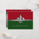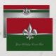 Dessa eleganta gröna och röda Fleur de Lis-inbjudningar till högtidsfirande presenterar en imiterad silvermetall Fleur de Lis-symbol på en röd och grön högtidsbakgrund. Anpassa med din företags-, svartklännings- eller annan speciell evenemangsinformation på baksidan, som visar en silver Fleur de Lis på en grön och röd rand och en gradientbakgrund som härmar en diamantstrålkastare.