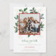 Ett elegant och klassiskt, enkelt, adressändrings julkort för familjen med en mall för ett foto, med en ram av vinterlövverk med julmistel och gul myrten (detta är en digital effekt, inte riktig folie) och modern typografi. Ett vackert botaniskt julkort som vi har flyttat som du kan anpassa med ditt/dina namn, året och ett familjefoto (eller barnens foto etc.).
