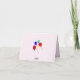 Rosa chokladfärgad cupcake med blå ljus mot vit grön cirkel och rosa prickar. Vacker ljusrosa bakgrund med blekrosa geometriska prickar. Tack är skrivet med vacker svart skrivstil.. Lämna meddelande inuti eller gör personlig. Baksidan har färgglada ballonger. Original Konst och Design © TamiraZDesigns.