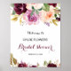 Denna gröna rosenskär burgundy blommiga bröllopsfest välkomstaffisch är perfekt för en rustik bröllopsfestfirande. Designen har eleganta gröna, rosenskära, lila, röda och burgundy handritade blomsterbuketter som inspirerar till naturlig skönhet.