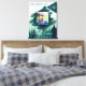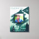 Vackra och varierande nyanser av grönt från bleka och mörka toner till turkos och ett tema med naturens egen tallskog i en illustration. Den avlidnes foto, namn och datum skapar en vacker minnesstund och minnesfirande design.
