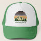 Anpassa dina egna mössor för att ta sig in på en resa genom naturen i sommar eller fall. Anpassa med ditt efternamn i ett sött, kursivt skript under trädens gröna skog och mörka bergssolnedgång för en cool semesterkeepy för din utomhusgrupp.