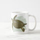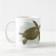 Mugg design presenterar en avbilda av en vuxen grön sköldpadda (en typ av havssköldpaddan) som dras från bosatt sköldpaddor vid djurlivkonstnärgryning Witherington. Gryning har personliga möten med havssköldpaddor lånat realistiskt specificerar till henne konst.